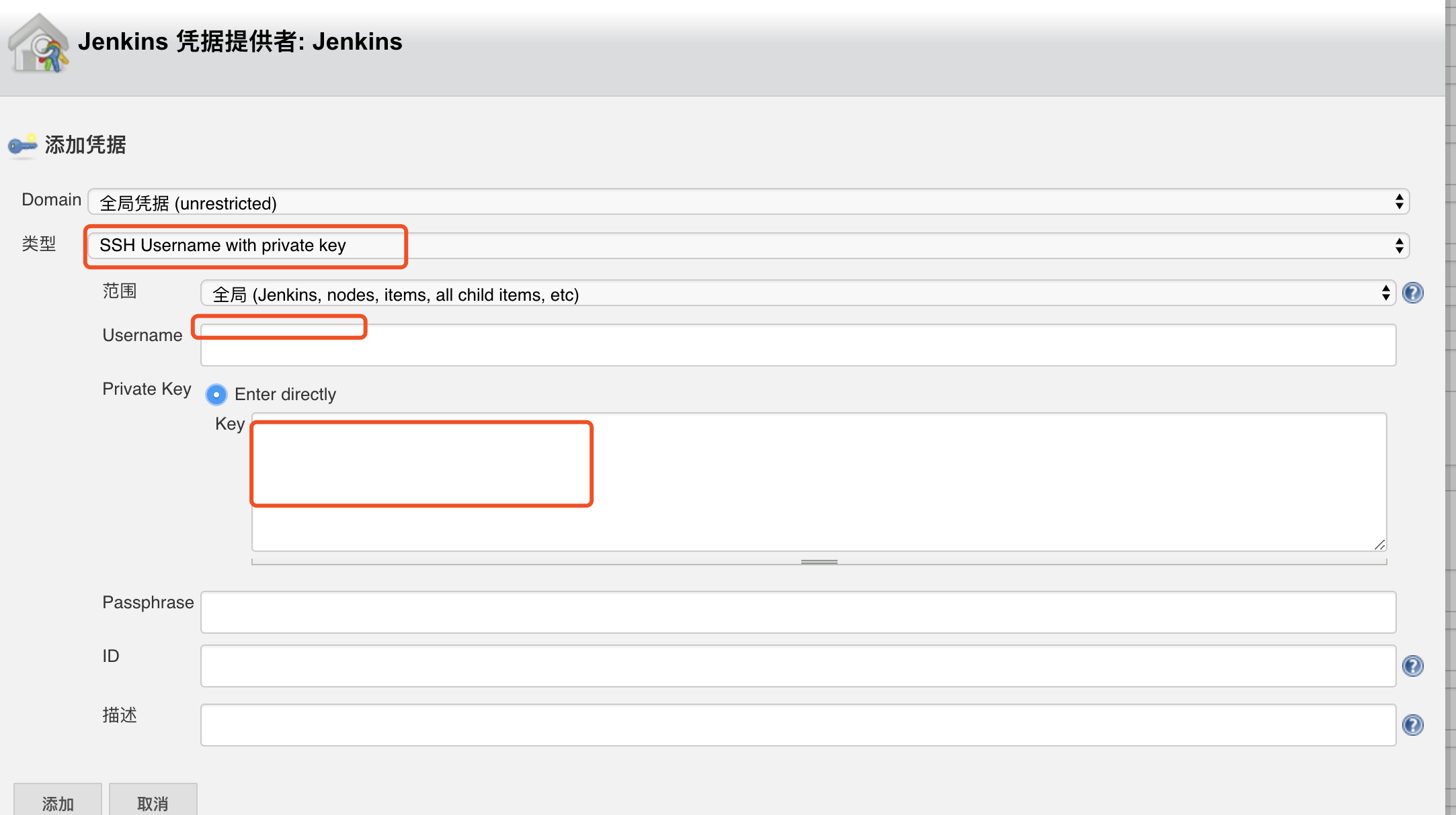 其中 credentials 设置为jenkins账号,username 为jenkins,私钥为jenkins的私钥