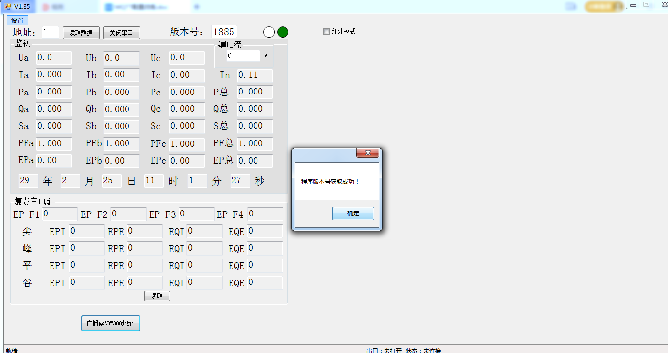 b.开启时如果提示COMX开启成功,点击“广播读ADW300地址”,显示版本号获取成功后右侧设置见面可视。