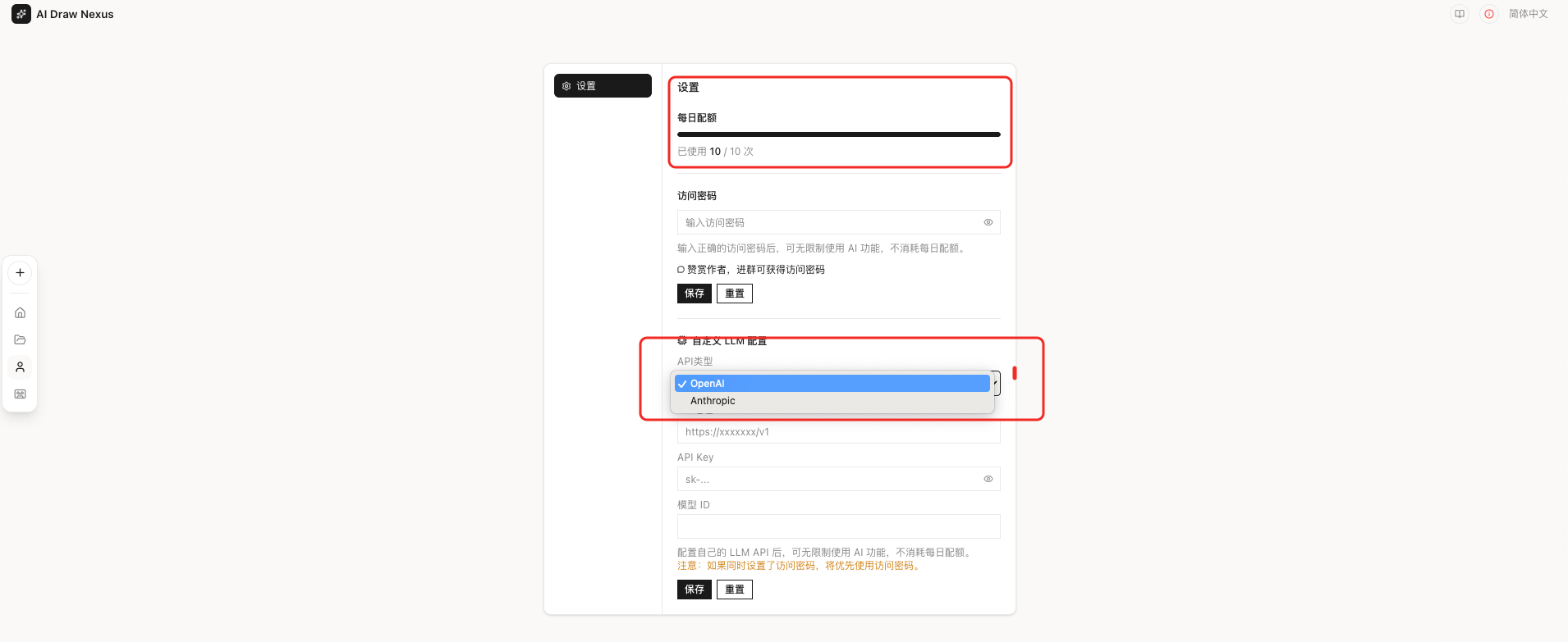 现在仅支持 OpenAI 和 Anthropic 两大模型。如果你有自己的 Key,建议本地搭一个,那才是真正的绘图自由!