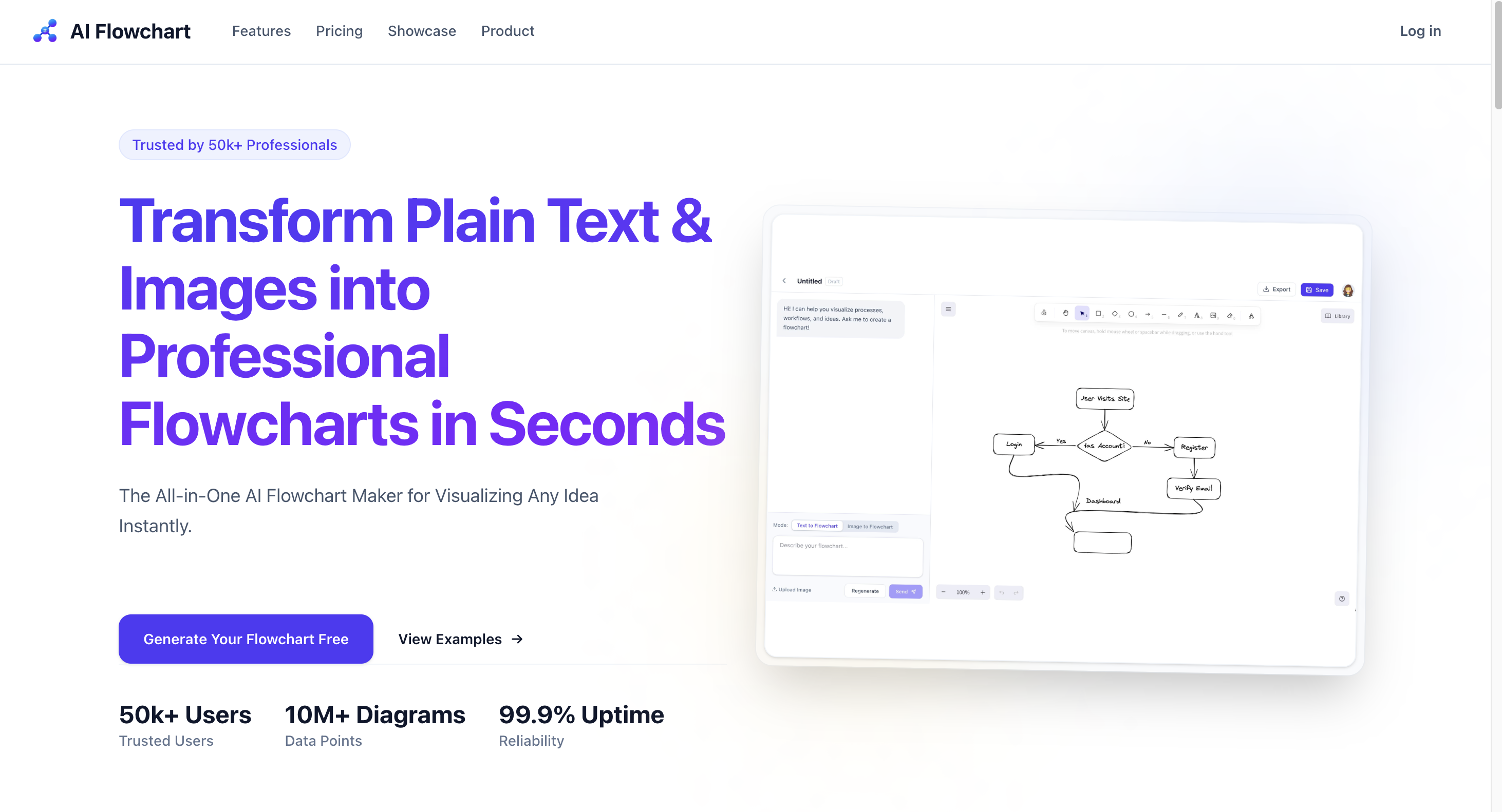 AI FlowChart(https://aiflowchart.net) is an AI flowchart generator that turns text prompts and image